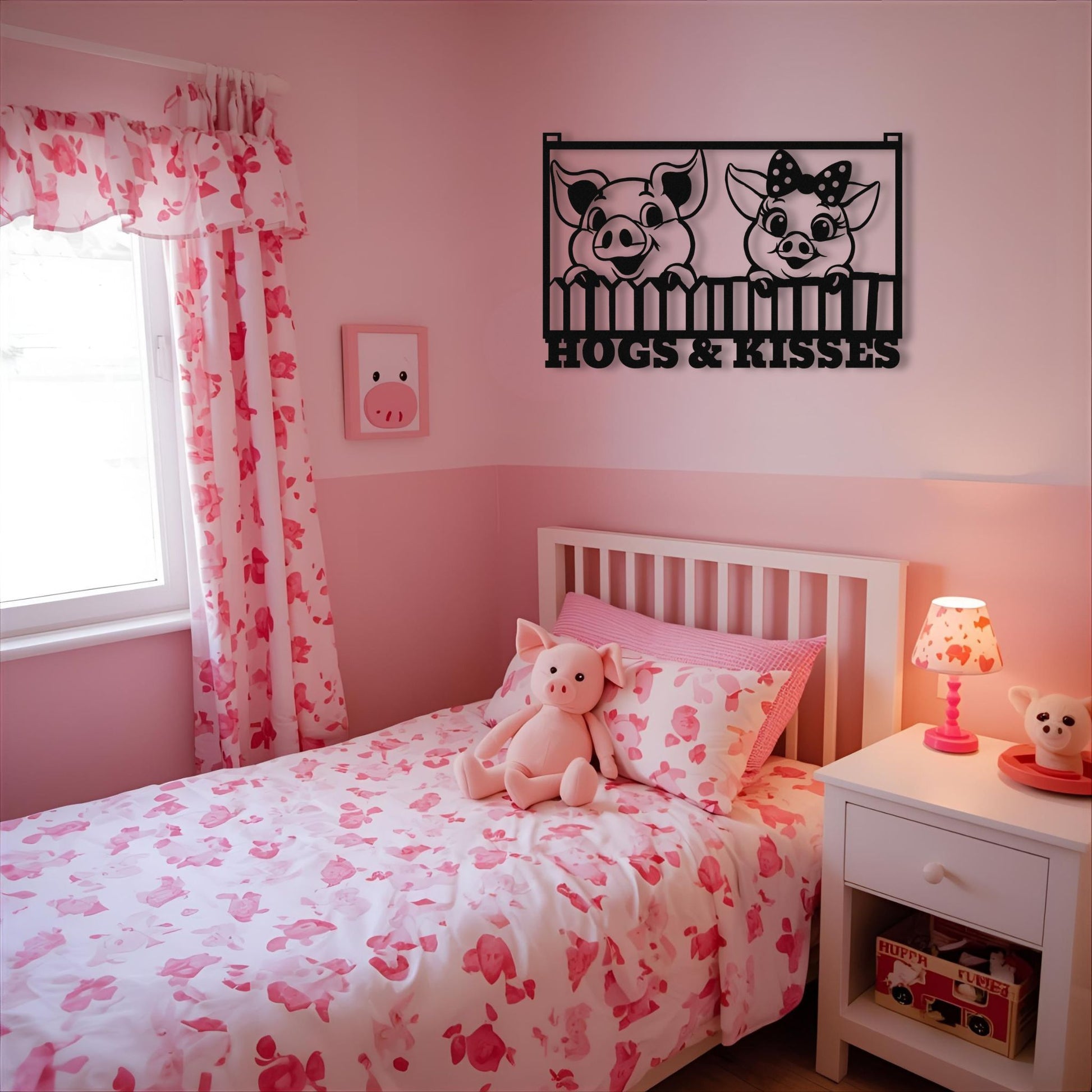 Bring a little love, laughter, and “Hogs & Kisses” to your walls with this delightful piggy pair!